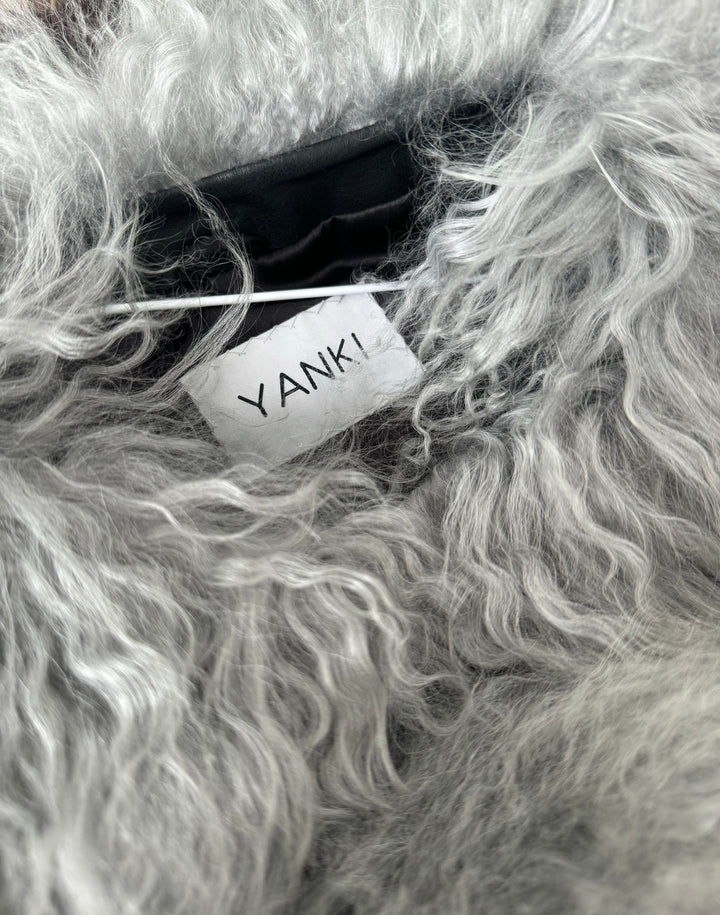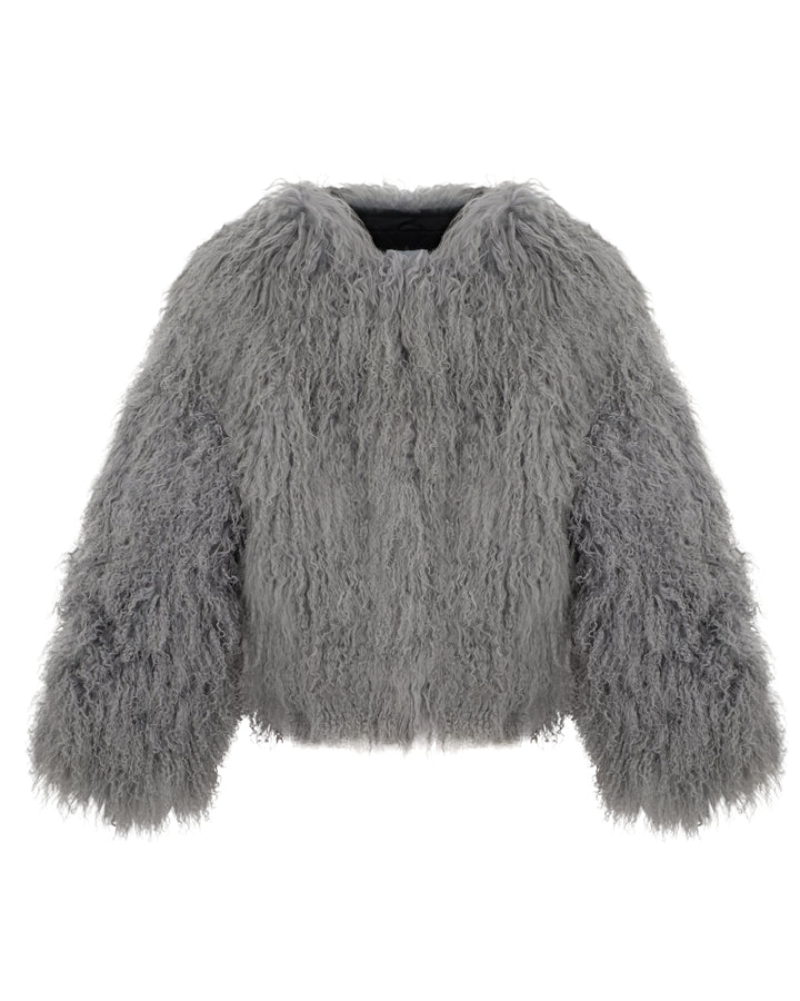 ШУБА ЛАМА ІЗ НАТУРАЛЬНОГО ХУТРА В СІРОМУ КОЛЬОРІ