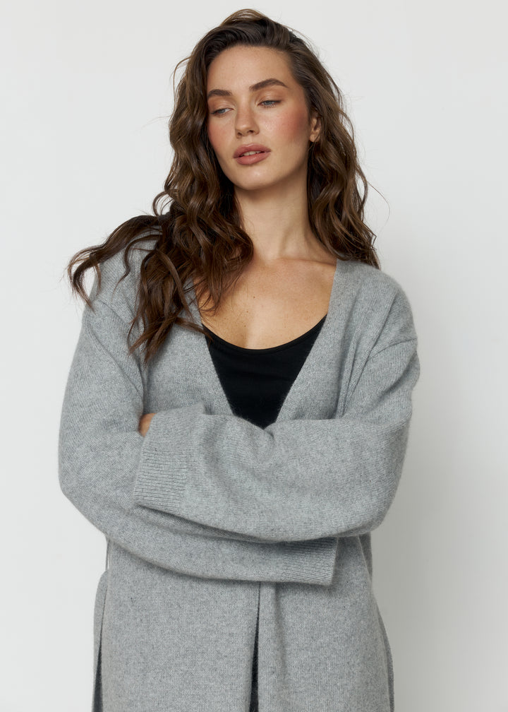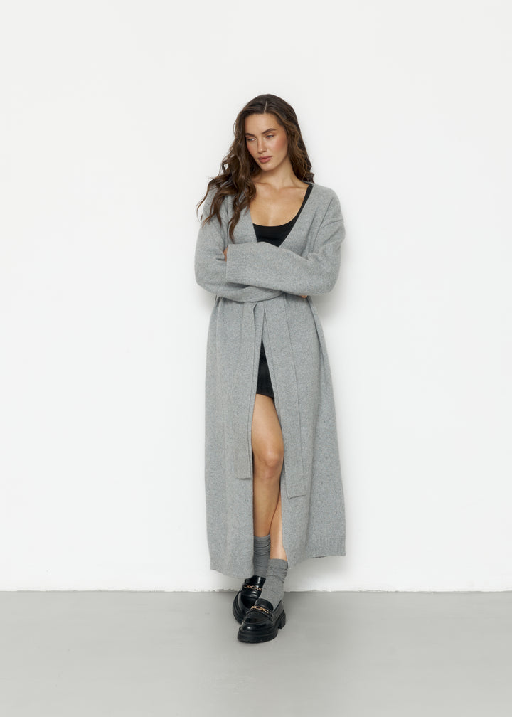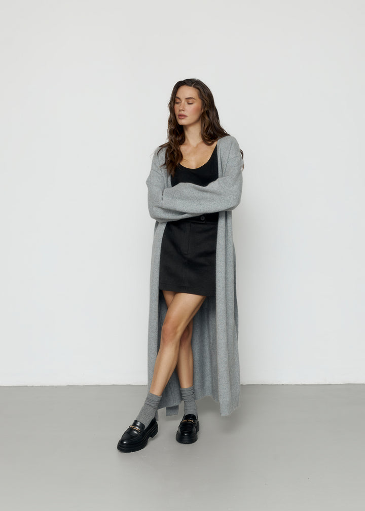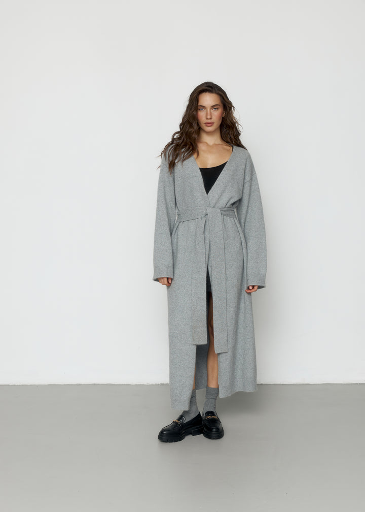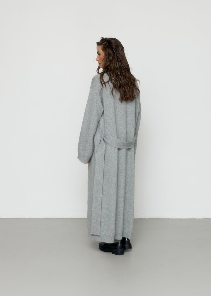 Кардиган виконаний із вовни ягня, доповнений поясом, що фіксується на шльовках.Доступний у двох варіантах довжини 120 і 130 см, що дозволяє обрати оптимальний варіант для вашого стилю.