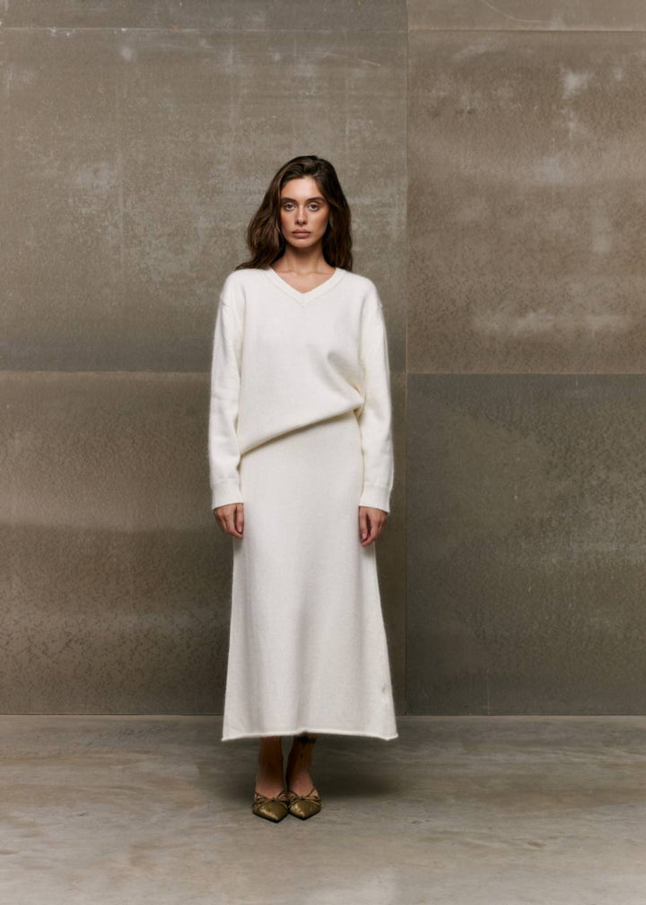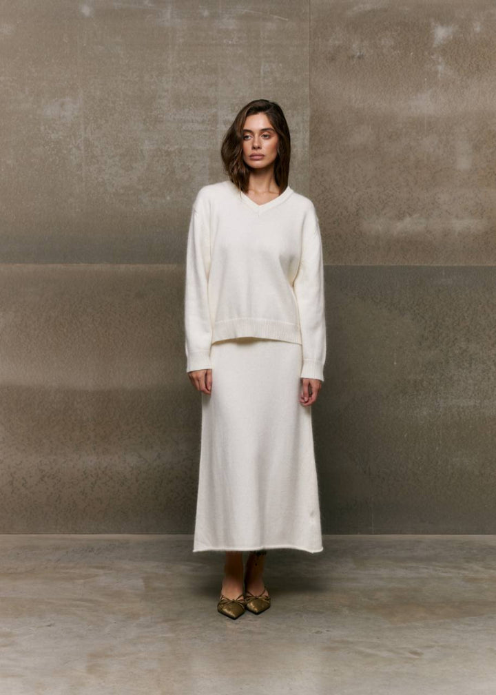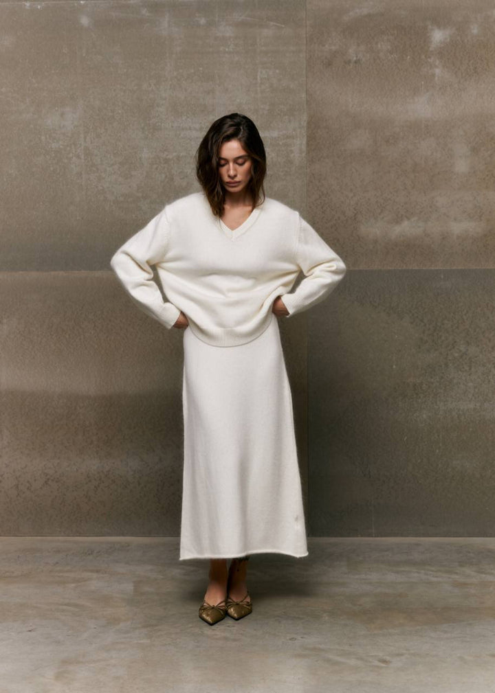 Спідниця прямого крою міді-довжини на зручній резинці, виконана зі щільної пряжі з вовни ягня.